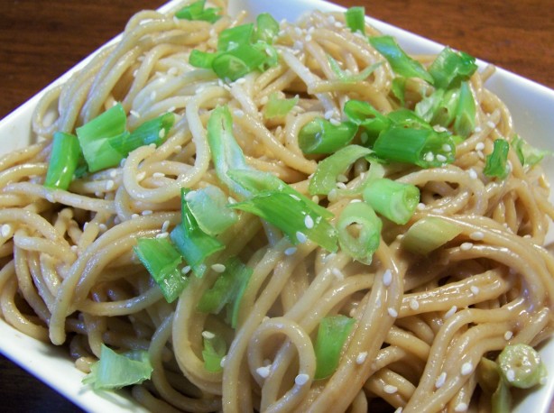 There are already numerous sesame noodles posted here on this site, but this one seems to differ slightly from them all. We found the more we ate from this dish, the more we liked it. To be served at room temperature, or chilled. Time to cook (and bring to room temperature) the noodles is not included.